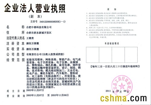 | 发证机构: | 安徽工商局 | 发证时间 : | 2003-11-07 |