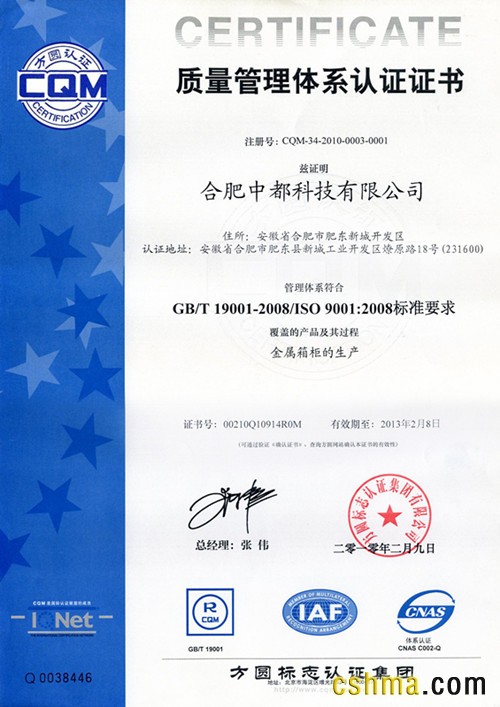 荣誉资质 合肥中都科技有限公司—ISO9000认证