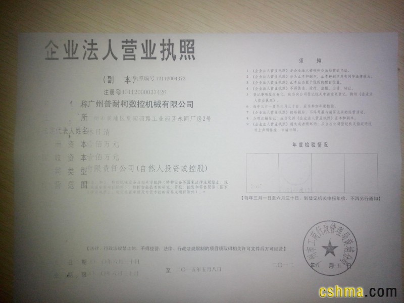证书介绍 广州普耐柯数控机械有限公司是德国PLACKE公司在中国投资生产数控折弯机、数控闸式剪板机、数控刨槽机的唯一企业。专业研发、生产、销售高档数控板金加工设备。以完美的品质,精湛的技术、高档的配置、优质的服务赢得广大客户的信赖与支持,并已成为中国用户的理想选择。坚持让用户“买得放心,用得开心”的理念。公司宗旨:不断完善,科技创新。公司原则:品质第一,服务第一。