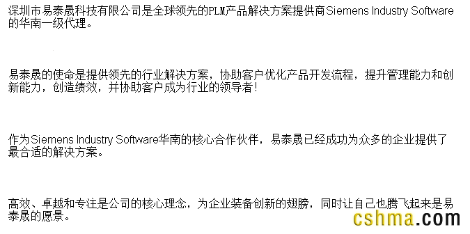 深圳市易泰晟科技有限公司是全球领先的PLM产品解决方案提供商Siemens Industry Software的华南一级代理。